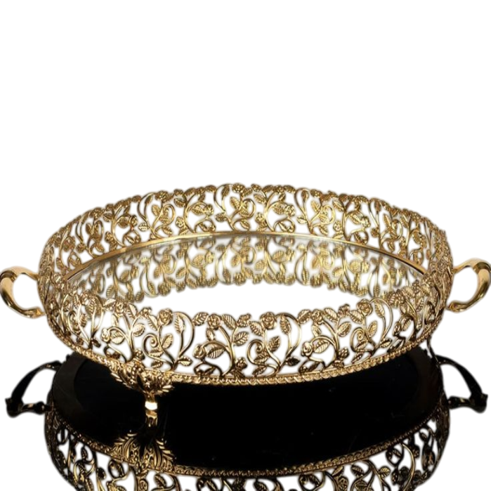 ถาดทรงกลมพร้อมไม้สำหรับตกแต่งบ้านรอมฎอนและบนโต๊ะทำด้วยมือ