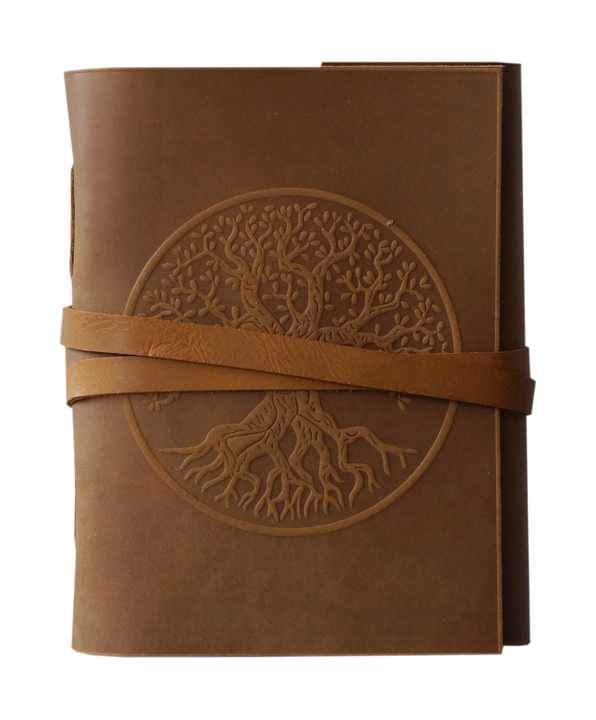 สมุดบันทึกและสมุดสเก็ตช์ภาพแบบโบราณลายนูนทำด้วยมือต้นไม้แห่งชีวิตทรงกลมหนังนิ่ม