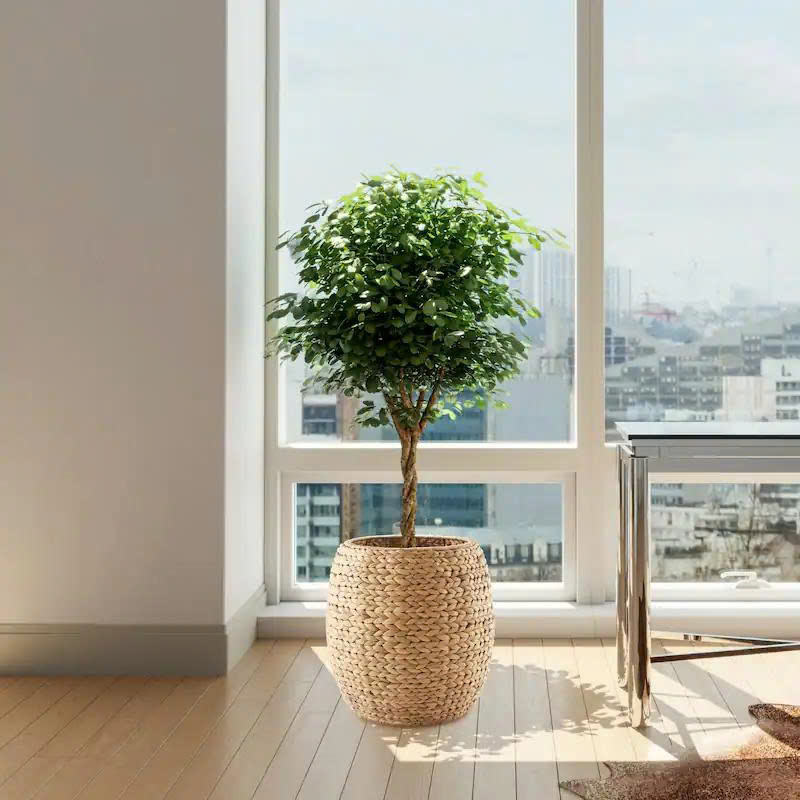 ตะกร้าเก็บของทรงกลมทำจากผักตบชวาพร้อมฝาปิด