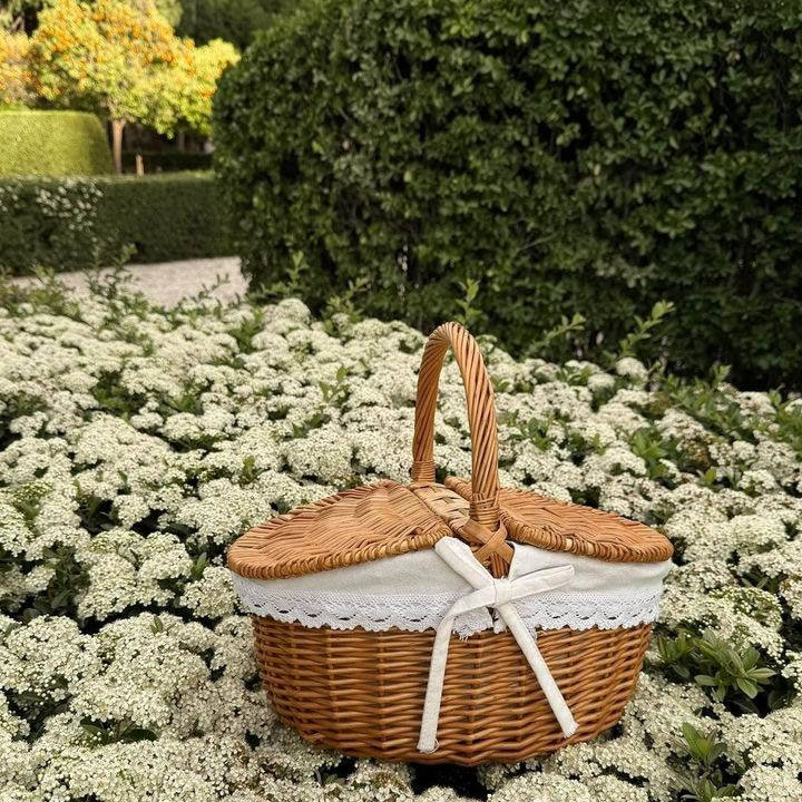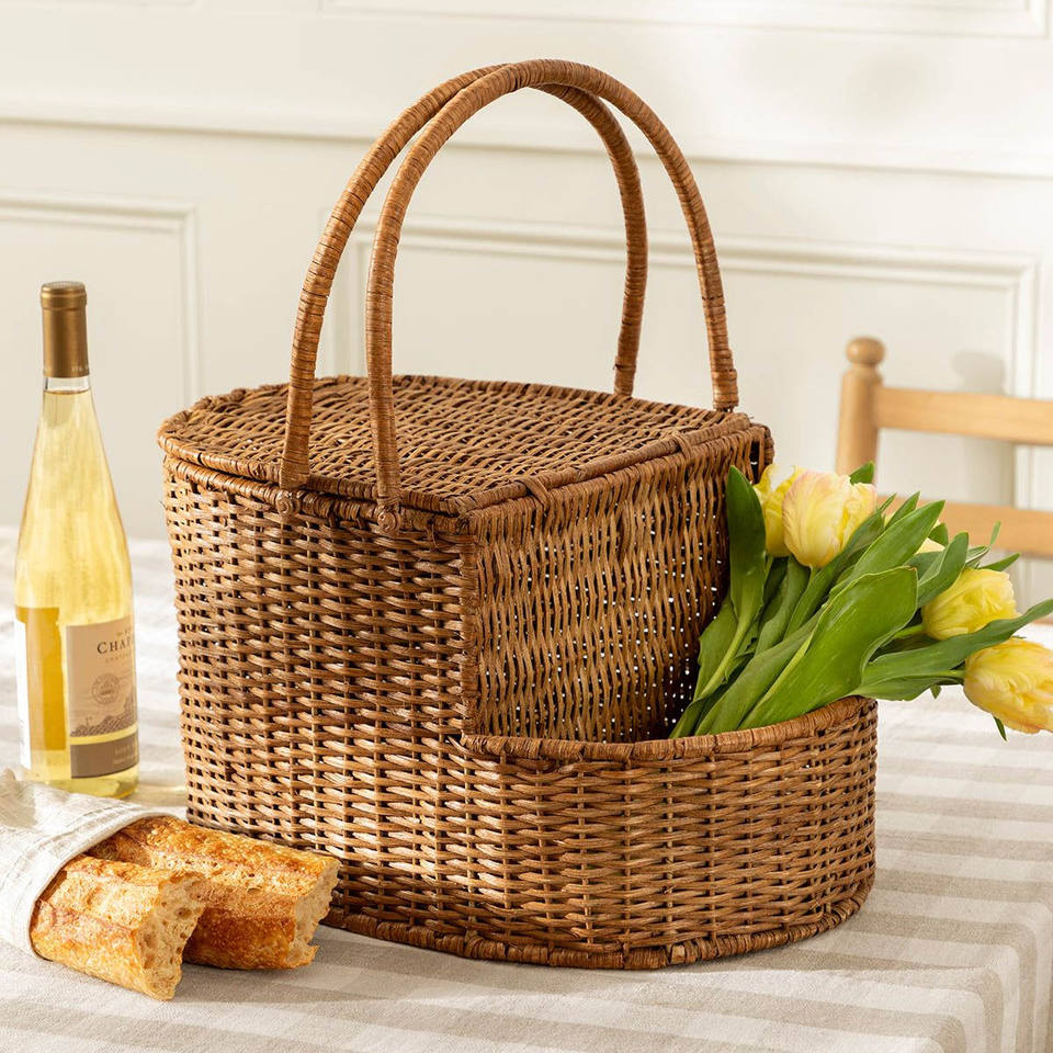 ตะกร้าปิกนิกพับได้ทำจากไม้ไผ่ทรงสี่เหลี่ยมผืนผ้าเป็นมิตรต่อสิ่งแวดล้อมพร้อมที่จับดีไซน์พกพาได้6-10L ขนาด60x40x30ซม. ขนาดประเทศเวียดนาม