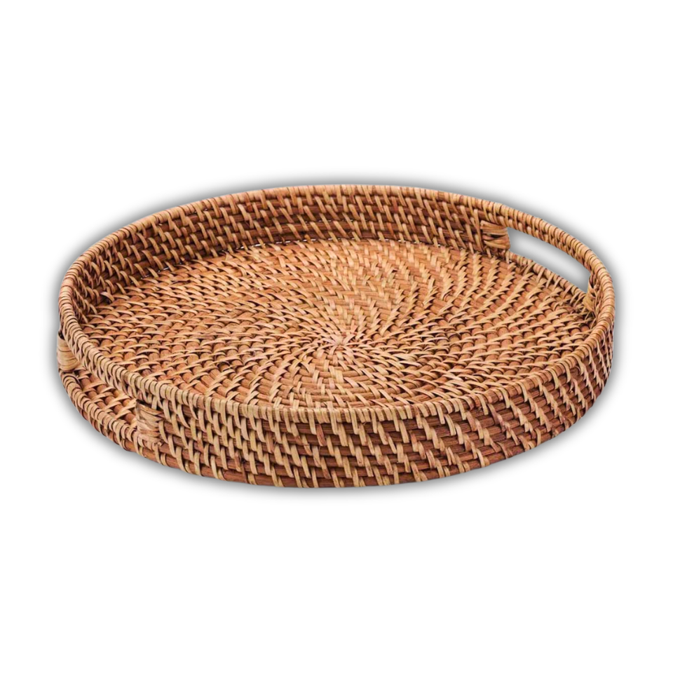ตะกร้าหวายกลม / ถาดหวาย ถาดหวายมีหูจับ 2 ข้าง ถาดสานจากหวายธรรมชาติสำหรับเสิร์ฟกาแฟและชา