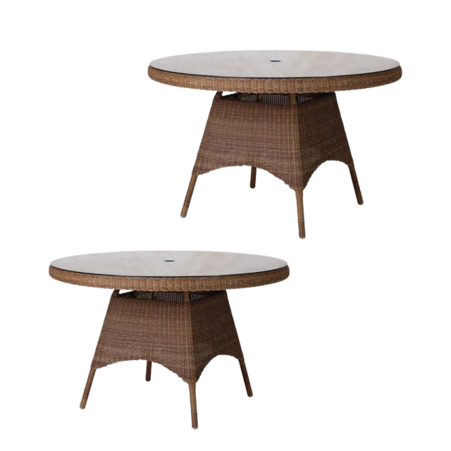 โต๊ะรับประทานอาหารหวายหวายทรงกลมมีรูร่มโต๊ะในสวนหวายสำหรับรับประทานอาหารกลางแจ้งและร้านอาหารเฟอร์นิเจอร์คุณภาพดีที่สุด