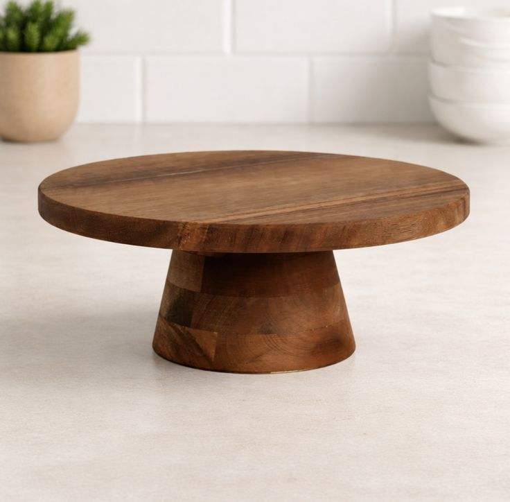 ฐานวางเค้กไม้ทรงกลมสำหรับโชว์เค้ก คัพเค้ก ขนมอบ ที่ร้านกาแฟ เบเกอรี่ เคาน์เตอร์ร้านอาหาร โต๊ะอาหาร และบ้าน