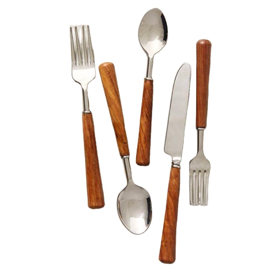 Round Wooden Handel Stainless Steel Cutlery Set Stainless Steel Silver Plated Flatware Antique Swirl Flatware