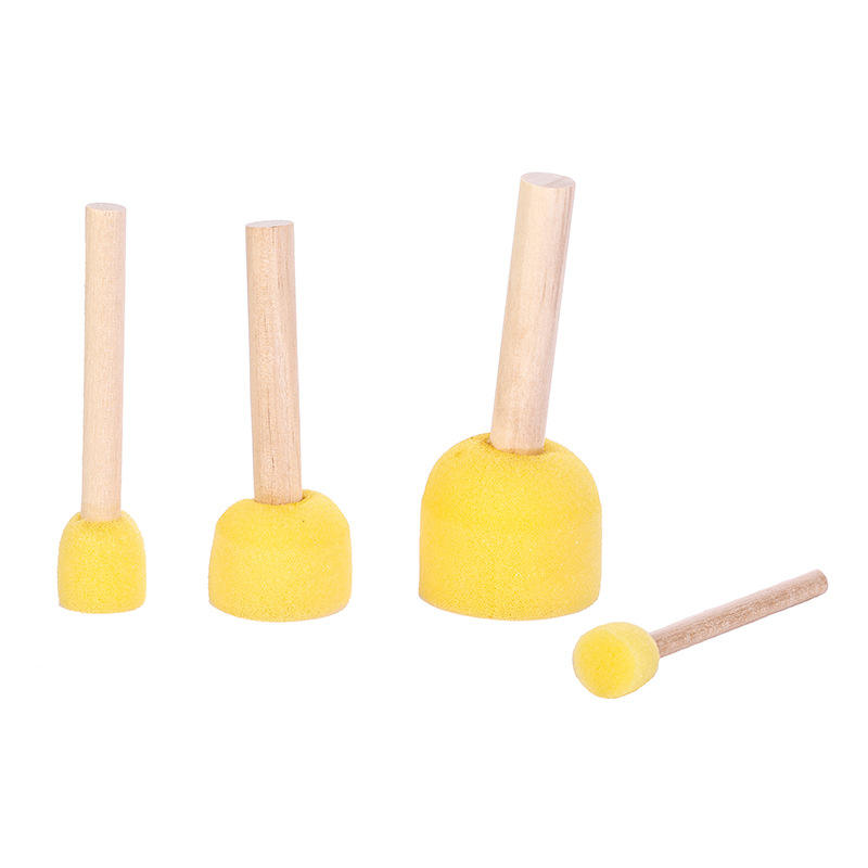 ชุดแปรงฟองน้ำด้ามไม้ทรงกลม5ชิ้นสำหรับปิดผนึกหัวเห็ดแปรงกราฟฟิตีเพื่อการศึกษาปฐมวัย