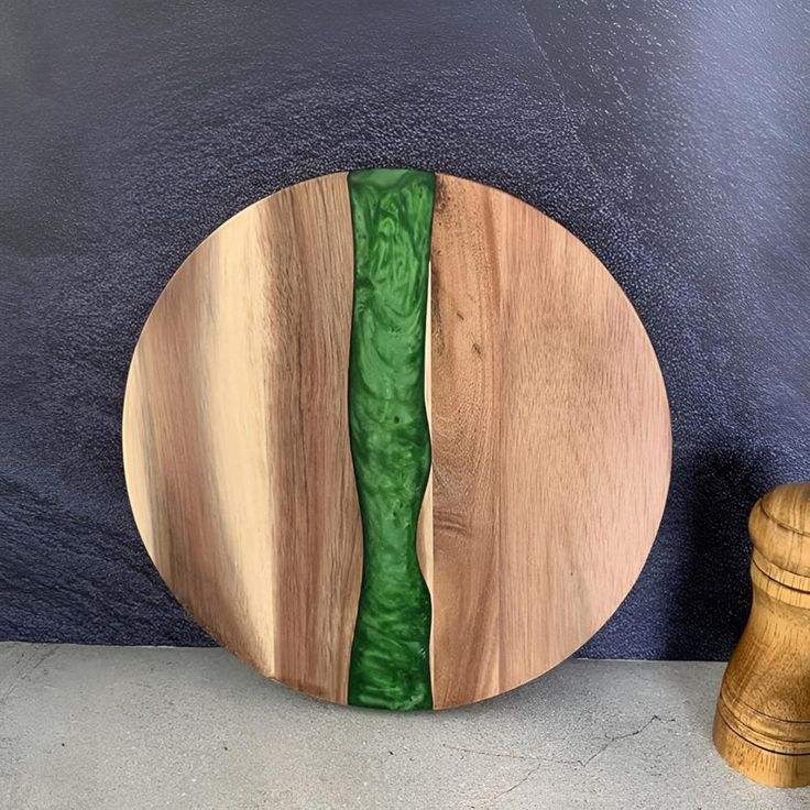 เขียงไม้ทรงกลมทำจากเรซินสีเขียวเขียงไม้เนื้อแข็งสำหรับรับประทานอาหารและเสิร์ฟในห้องครัว