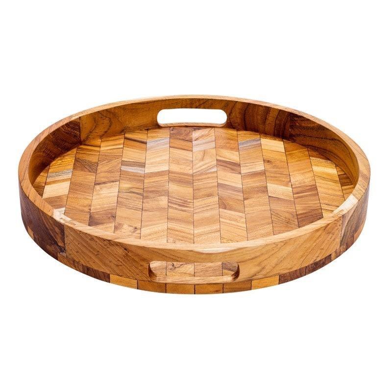 ถาดไม้ทรงกลมสำหรับเสิร์ฟและโชว์อาหารชั้นเดียวโต๊ะเก็บเครื่องเทศและเครื่องดื่ม