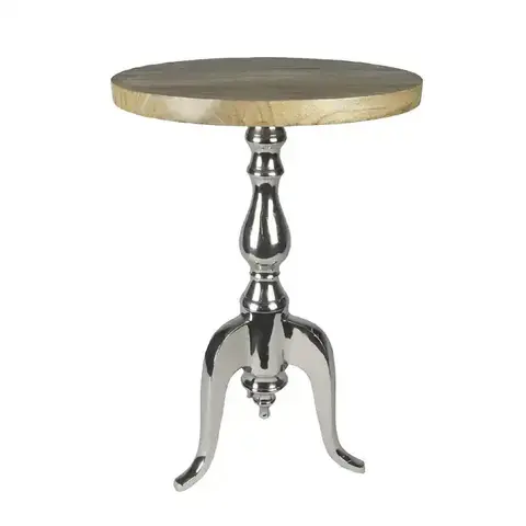 โต๊ะกลางทรงกลมหน้าไม้ โต๊ะข้างโลหะสีเงิน เฟอร์นิเจอร์ตกแต่งบ้านหรูหรา คาเฟ่ ห้องนั่งเล่น