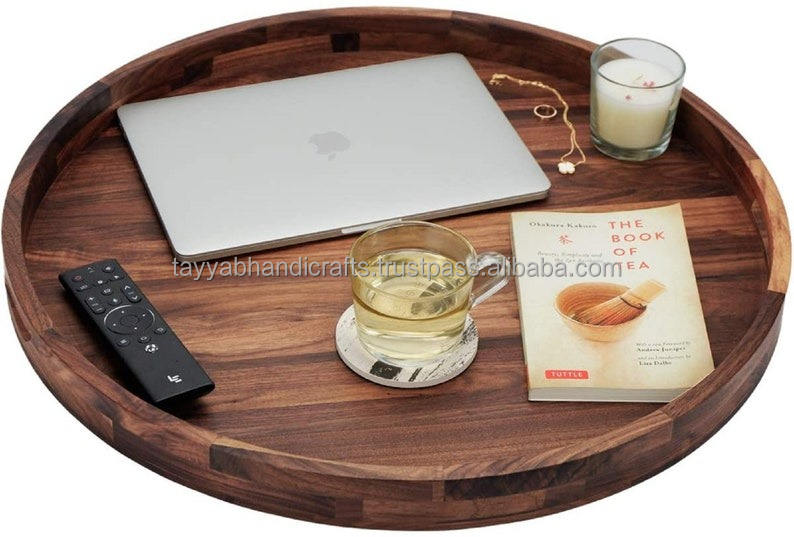 ถาดเสิร์ฟไม้ทรงกลม งานฝีมือ ทำจากไม้ ใช้งานง่าย