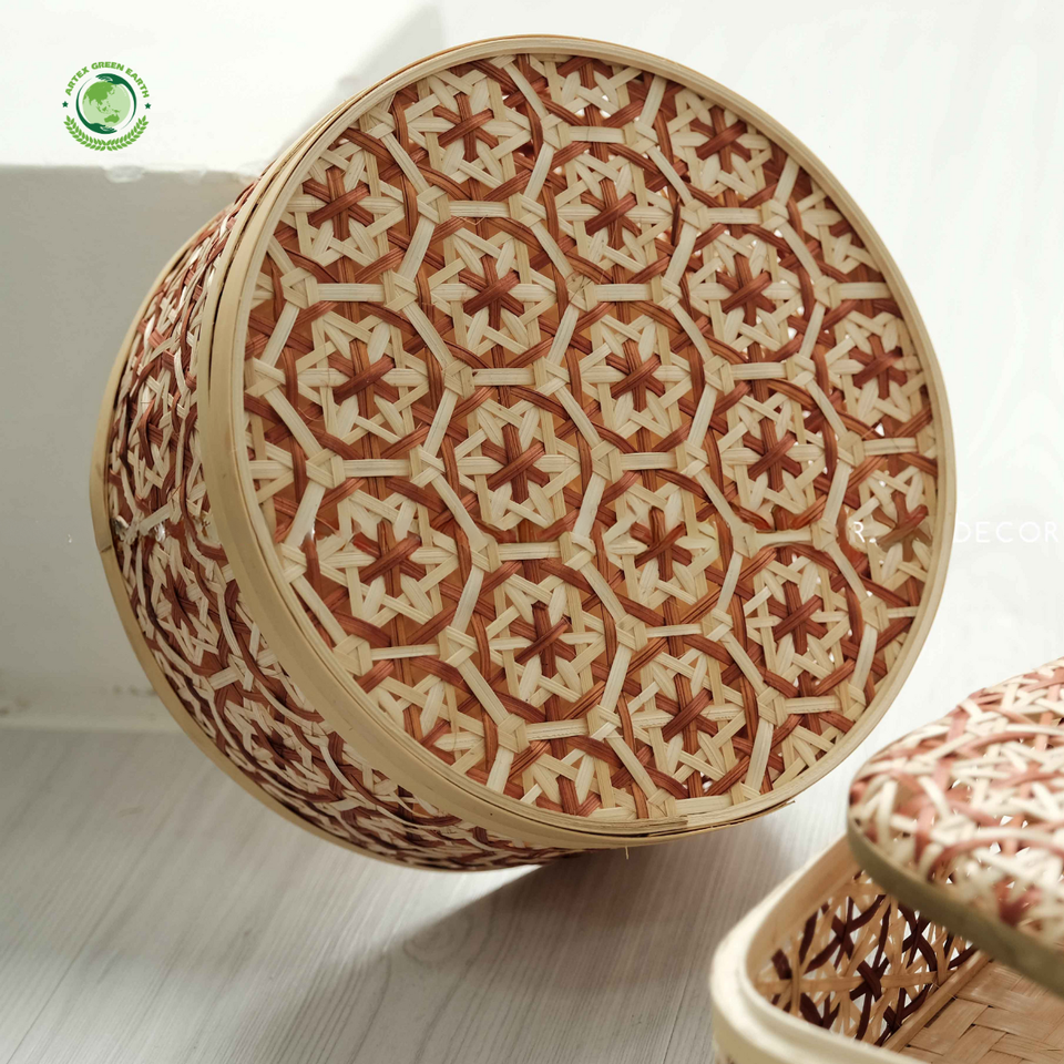 ชื่อผลิตภัณฑ์:กล่องของขวัญไม้ไผ่ทรงกลมพร้อมฝาทอ