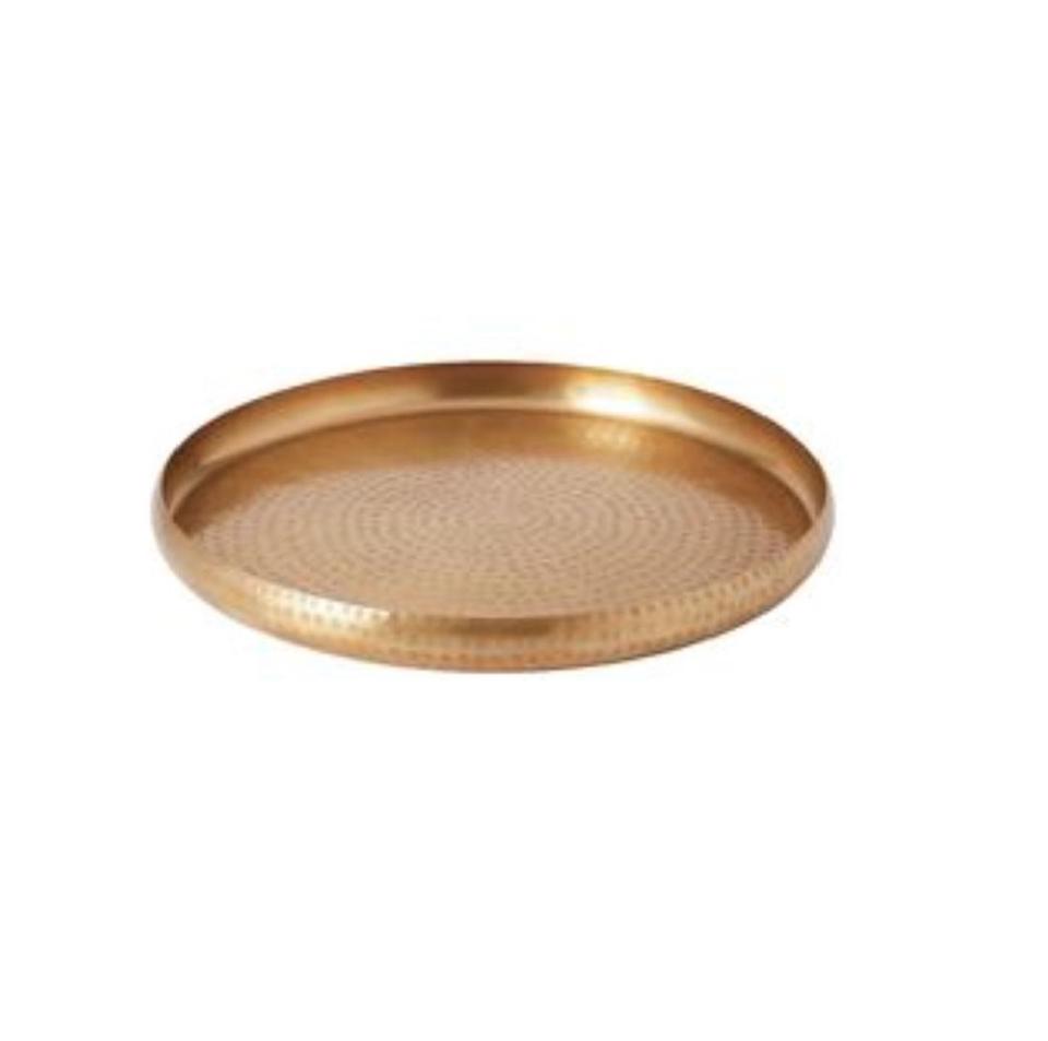 ถาดเสิร์ฟทองเหลืองทรงกลมลายนูนพื้นผิวโบราณเหมาะสำหรับงานรื่นเริงและการจัดตกแต่งบ้านบนโต๊ะที่หรูหรา