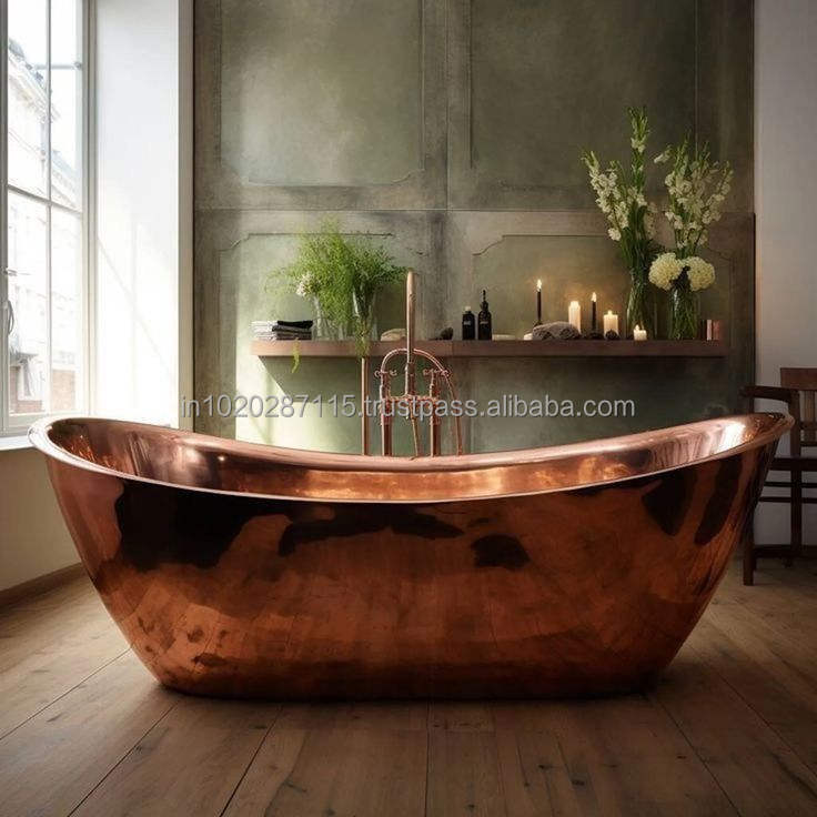 อ่างอาบน้ำทรงกลมทำจากทองแดง สำหรับการออกแบบตกแต่งภายในห้องน้ำสปาที่เป็นเอกลักษณ์ ทนทาน สบาย มีสไตล์ หรูหรา พร้อมการตกแต่งระดับพรีเมียม