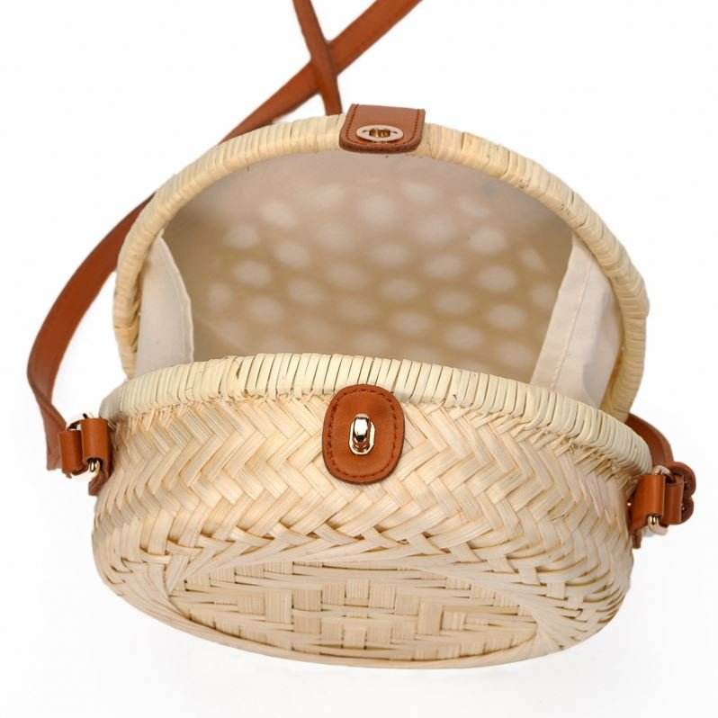 กระเป๋าทรงพระจันทร์ครึ่งเสี้ยวทำจากไม้ไผ่