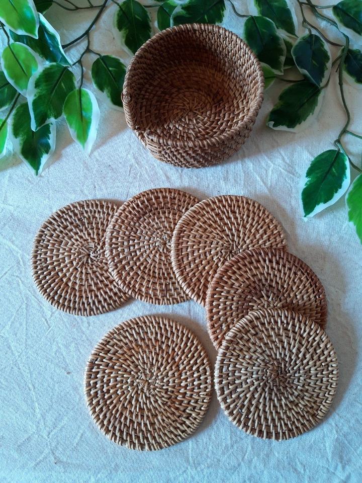 ที่รองแก้วหวายทรงกลมจากเวียดนาม-ชุดละ6ชิ้นพร้อมด้ามจับ