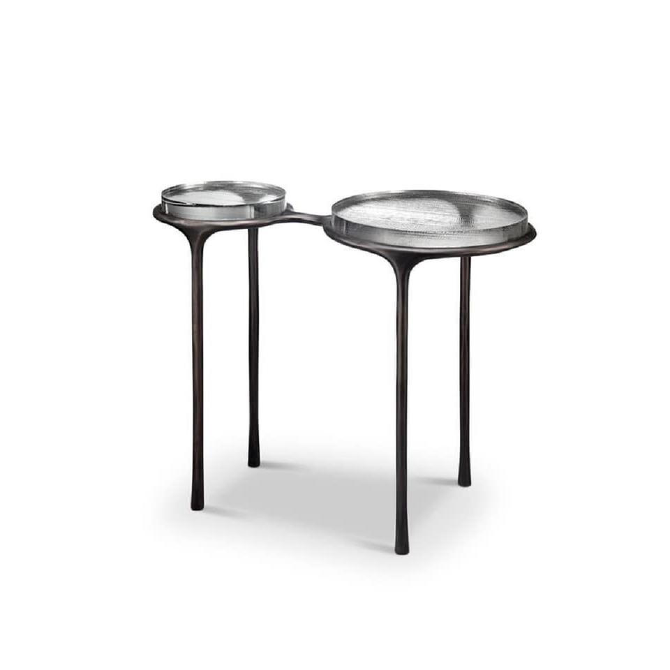 โต๊ะกาแฟทรงกลม ดีไซน์ชิปส์เมทัล โต๊ะข้างกาแฟ คุณภาพแบบโบราณ ขนาดสั่งทำได้ โต๊ะข้างอะลูมิเนียม โต๊ะข้างทองเหลือง
