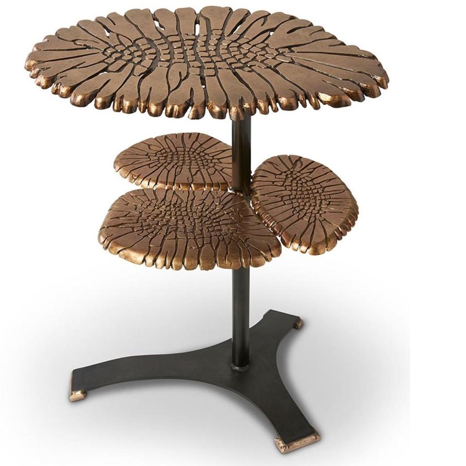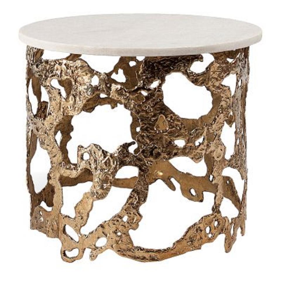 โต๊ะกาแฟทรงกลมลายปลา โต๊ะข้างโลหะ คุณภาพแบบโบราณ ขนาดสั่งทำได้ โต๊ะข้างอะลูมิเนียมสีทองเหลือง