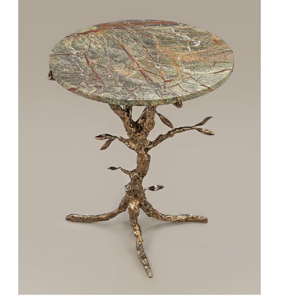 โต๊ะกาแฟทรงกลม ดีไซน์หรูหรา ทำจากโลหะ โต๊ะข้างกาแฟ คุณภาพแบบโบราณ ขนาดสั่งทำได้ โต๊ะข้างอะลูมิเนียมสำหรับงานทองเหลือง