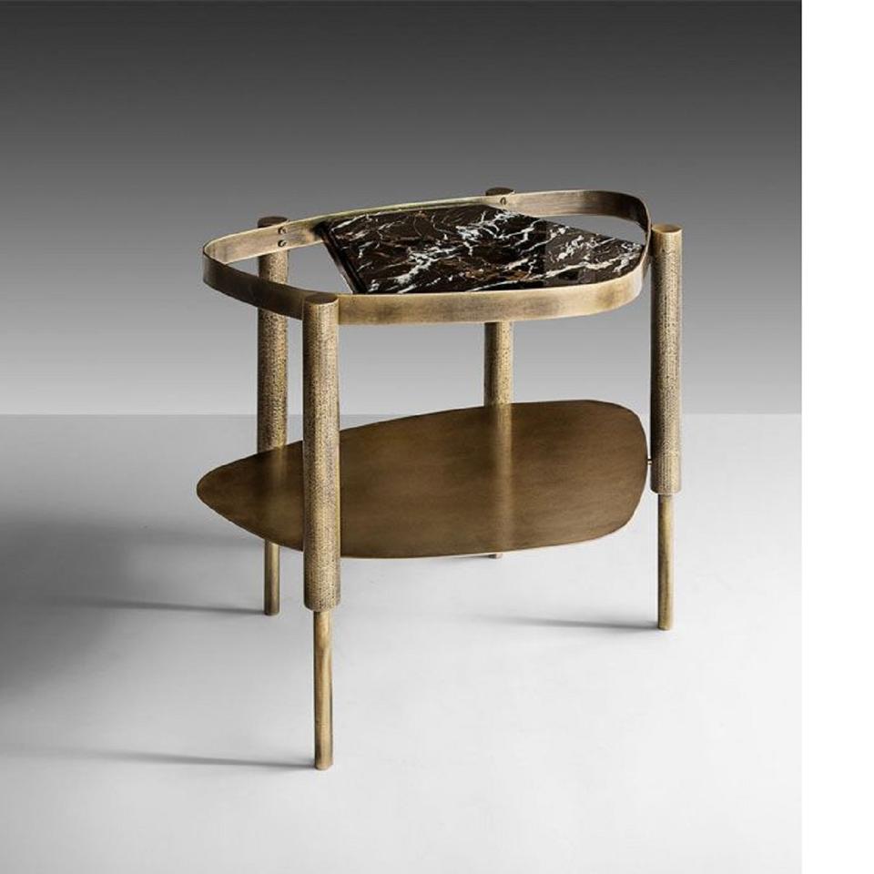 โต๊ะกาแฟทรงกลม ดีไซน์สามเหลี่ยม โต๊ะข้างโลหะ คุณภาพแบบโบราณ ขนาดสั่งทำได้ โต๊ะข้างอะลูมิเนียม ทองเหลือง