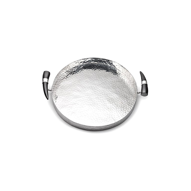 ถาดรองจานเสิร์ฟทรงกลมสีเงินถาดถาดสเตนเลสสตีล