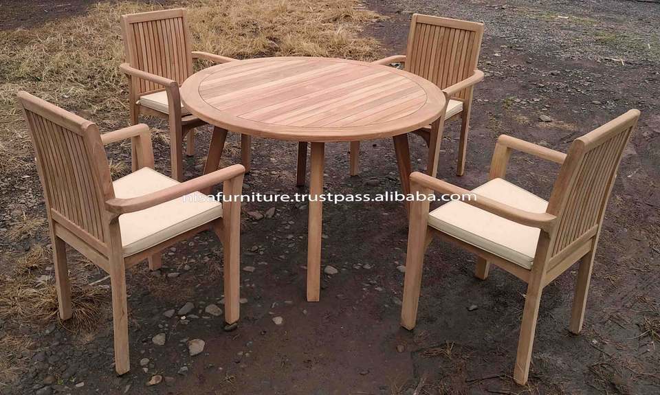 ดีไซน์โต๊ะรับประทานอาหาร:ไม้สักบนโต๊ะพับและเก้าอี้