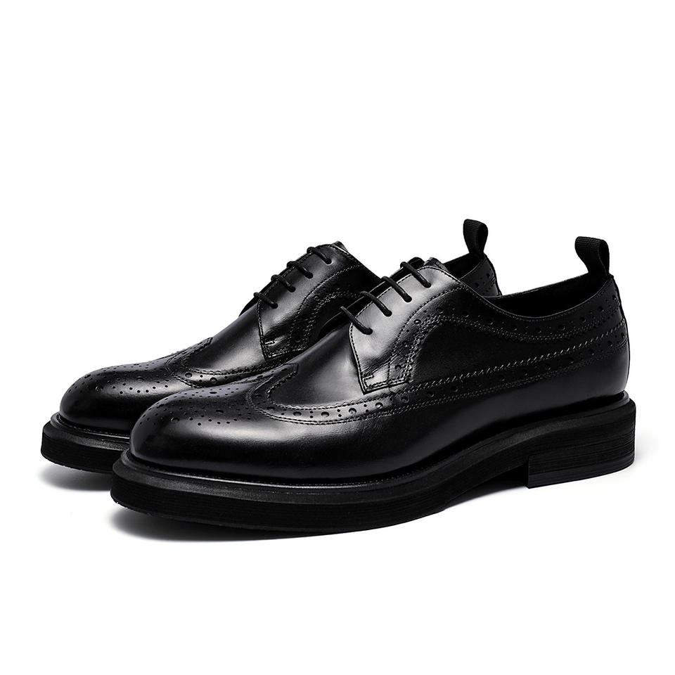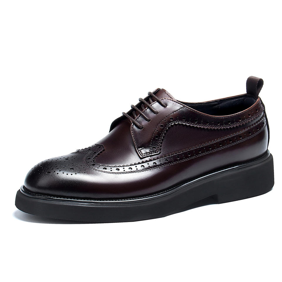 รองเท้าหนังแท้ทรงหุ้มข้อสำหรับผู้ชาย ยี่ห้อ Round-toed Broock หนังวัวคุณภาพสูง พื้นหนา เพิ่มความสูง สไตล์ลำลองสำหรับธุรกิจ