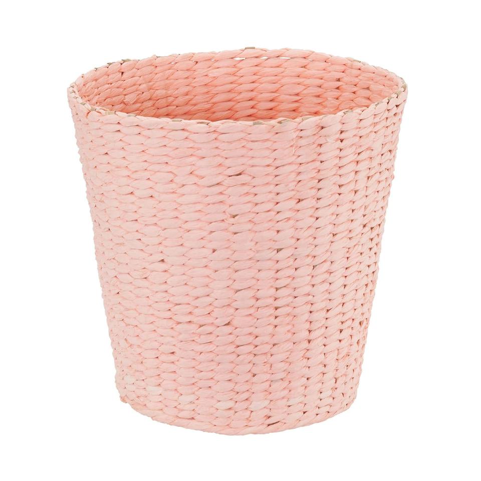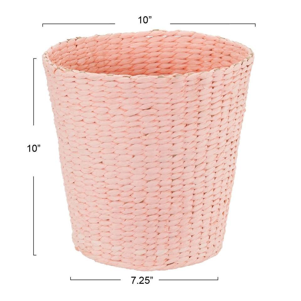 ตะกร้าผักตบชวาทรงกลม 2 ใบ ย้อมสีชมพู ตะกร้าเก็บของทำมือ ขายส่ง เป็นมิตรกับสิ่งแวดล้อม ผลิตในเวียดนาม