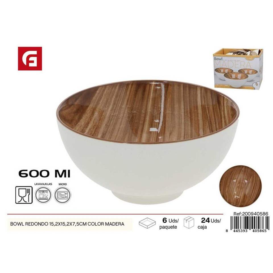 Round wood-colored bowl 15.2x15.2x7.5cm - Decorative tableware