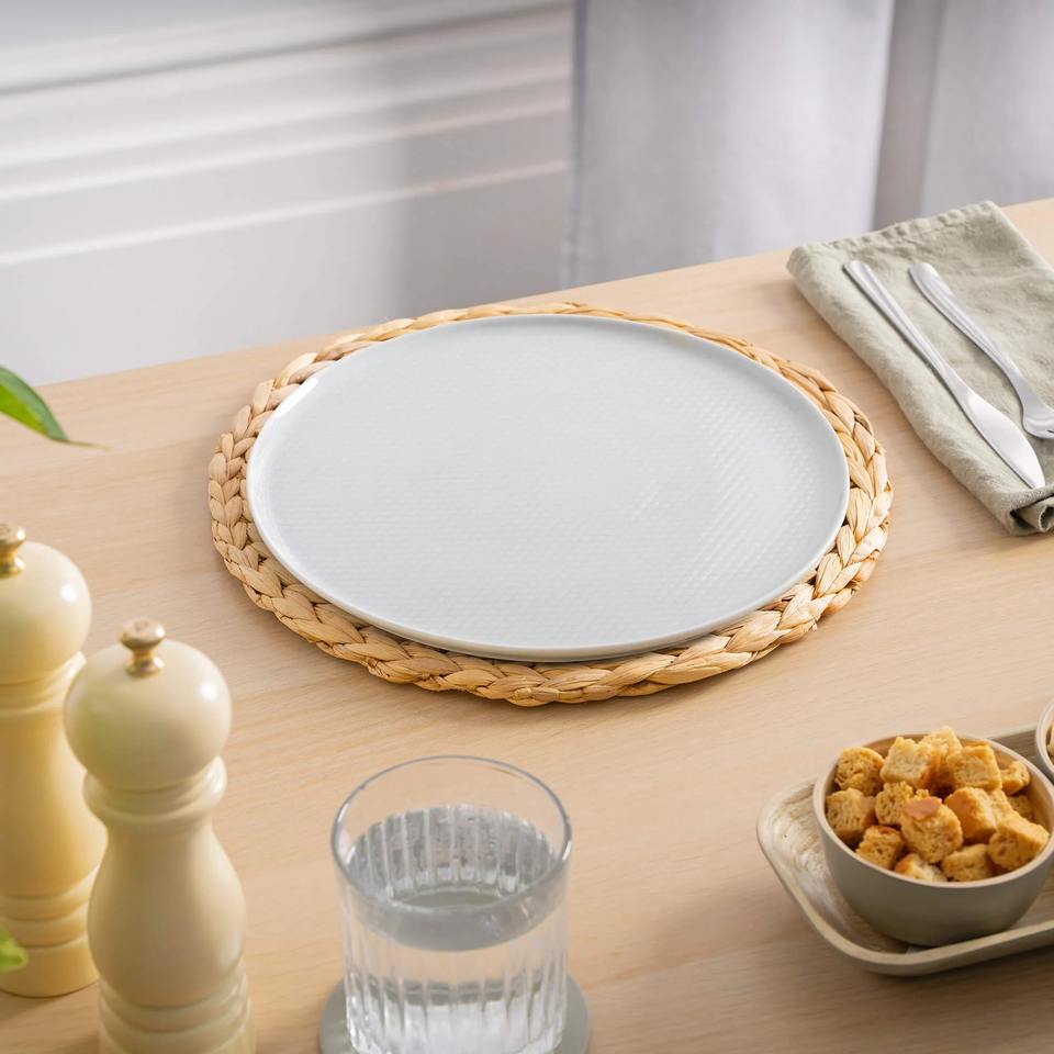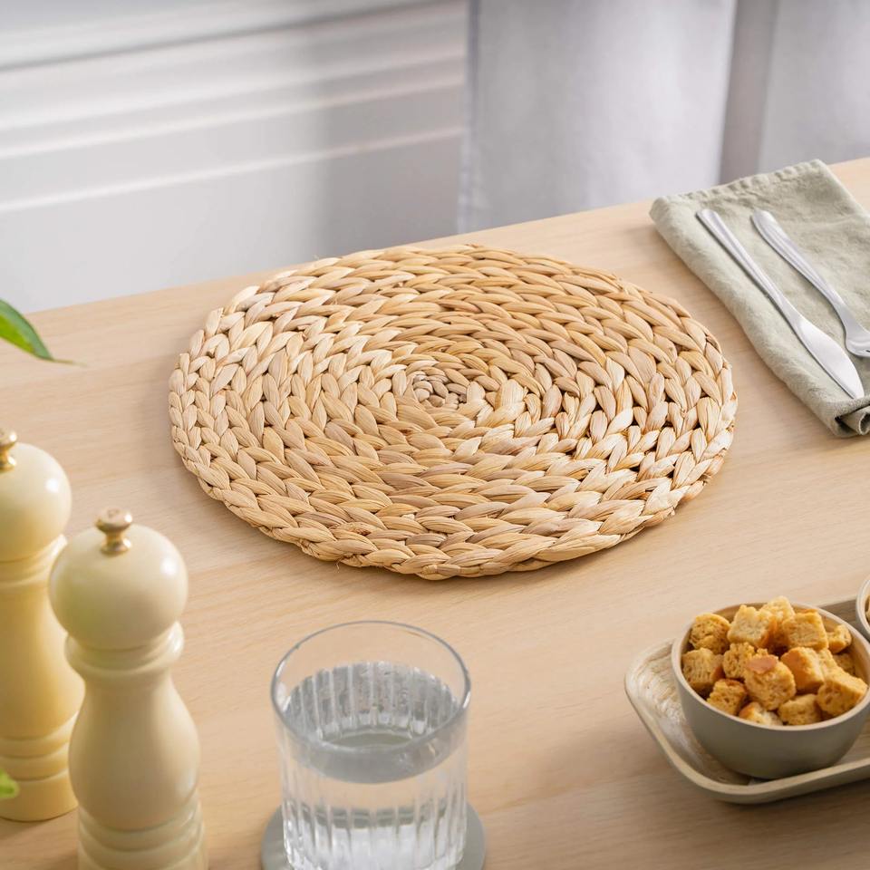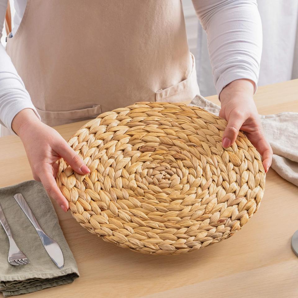 ขนาด: L: D13,8นิ้ว M: D11,8นิ้ว:แผ่นรองจานผักตบชวาทรงกลมแบบเรียบง่าย