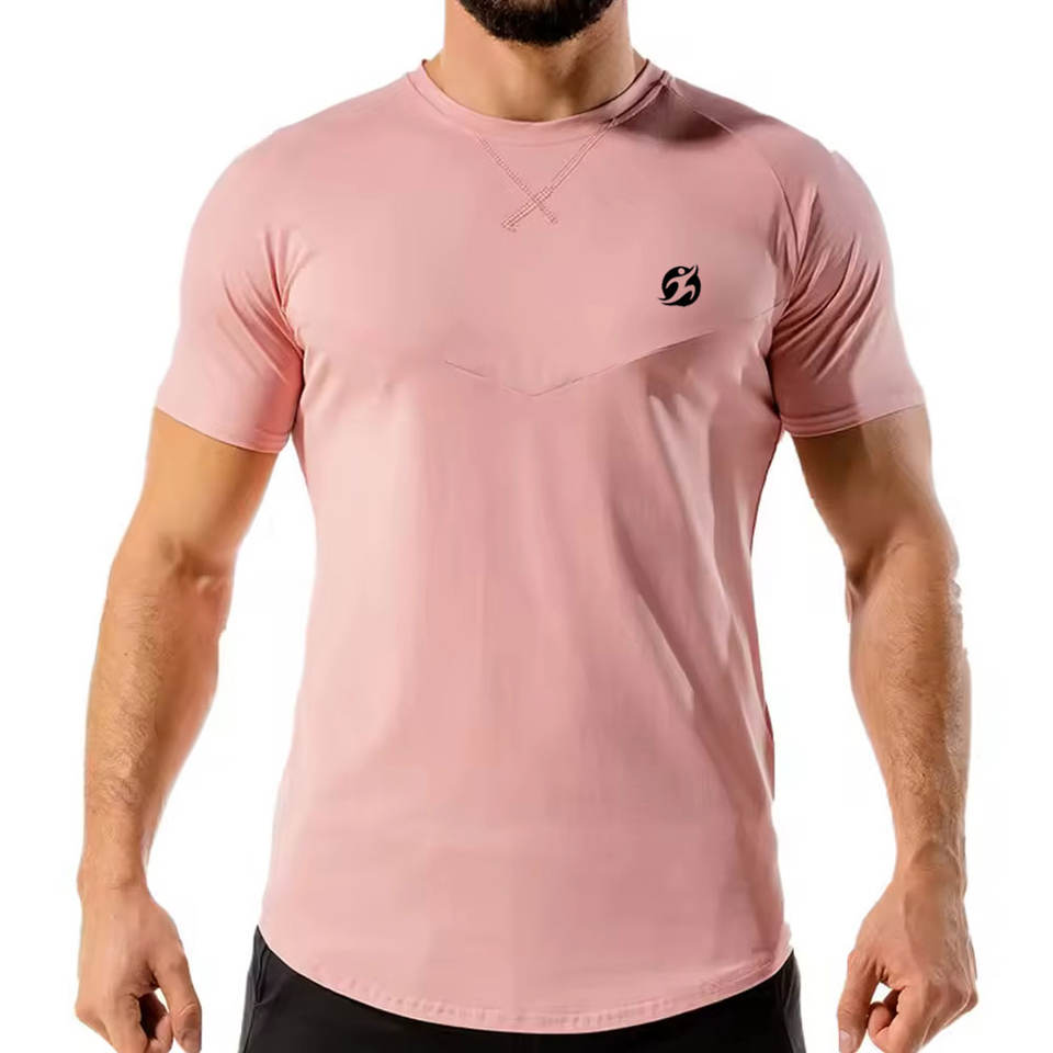 เสื้อยืดคอกลมผู้ชายสำหรับออกกำลังกาย ระบายอากาศได้ดี พิมพ์ลาย แห้งเร็ว ผ้าแคนวาส ออกแบบเองได้ ทรงเข้ารูป ไร้ตะเข็บ แขนสั้น