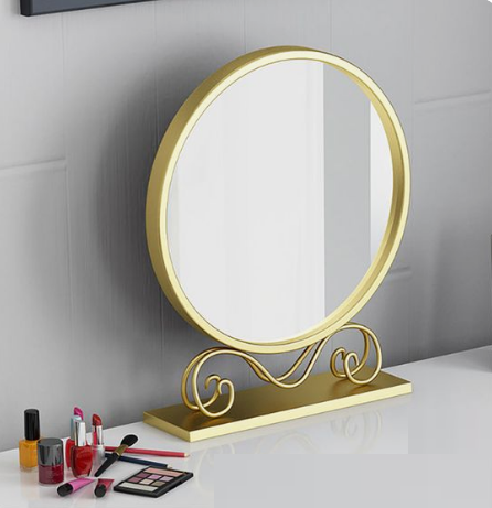 กระจกแต่งหน้าสำหรับตกแต่งทำด้วยมือทรงกลมกระจกโต๊ะเครื่องแป้งสำเร็จรูปทำจากทองแดงอุปกรณ์เครื่องสำอางแบบพกพาเครื่องใช้บนโต๊ะอาหาร