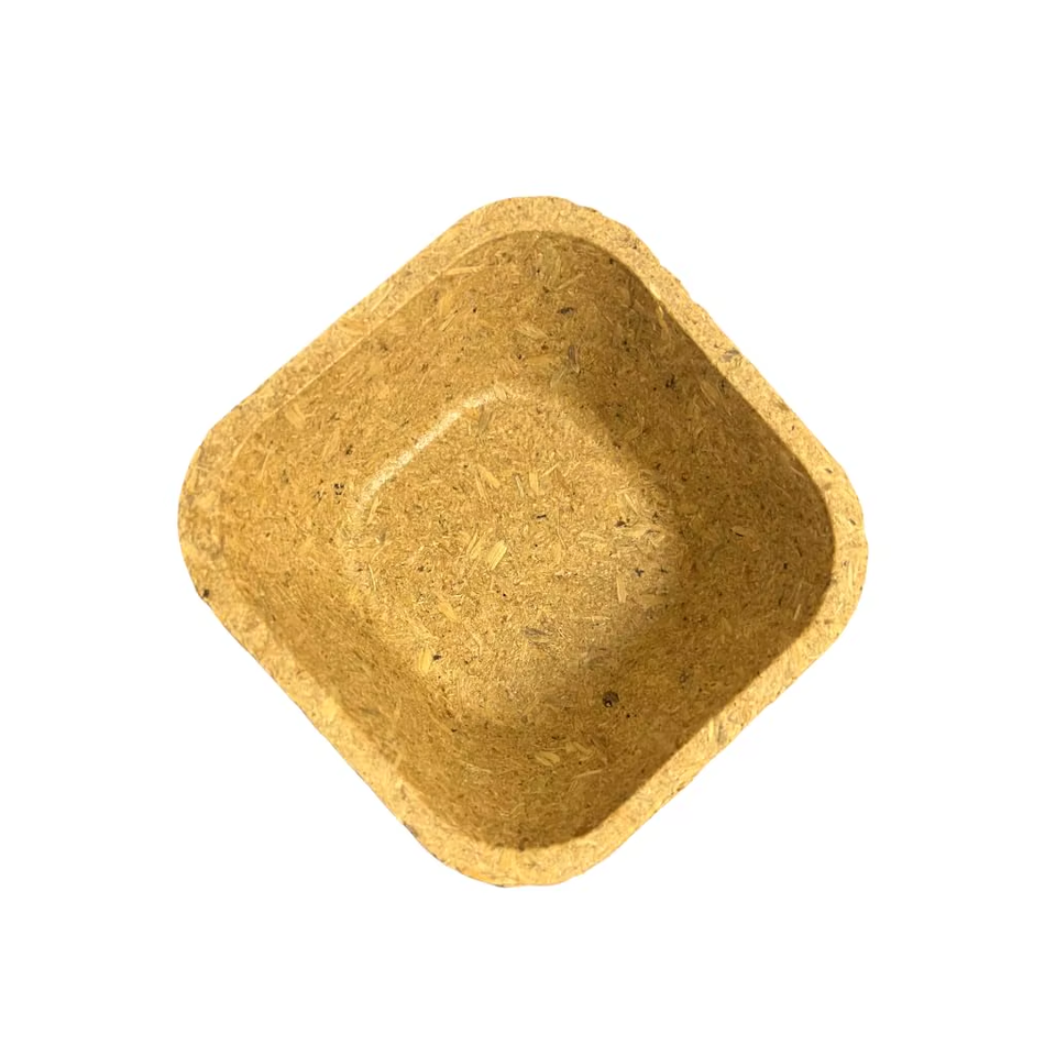 ชามทรงเหลี่ยมแบบใช้แล้วทิ้ง เป็นมิตรกับสิ่งแวดล้อม ย่อยสลายได้ตามธรรมชาติ ทำจากแกลบข้าว สำหรับงานเลี้ยง