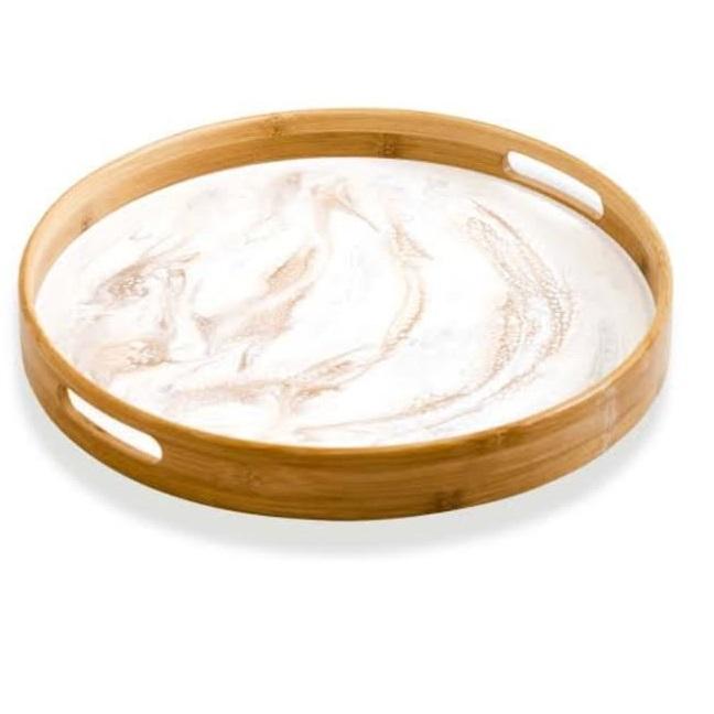 ถาดไม้ทรงกลม ถาดเสิร์ฟกาแฟ ชา ขนมปัง ถาดพกพา เป็นมิตรกับสิ่งแวดล้อม สำหรับใช้ในบ้าน โรงแรม และร้านอาหาร