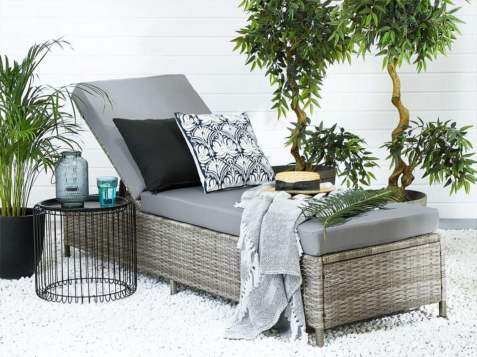 เก้าอี้อาบแดดหวายสีเทาหรูหราสำหรับกลางแจ้ง Rovigo เฟอร์นิเจอร์สำหรับลานบ้านหรือระเบียงสวน