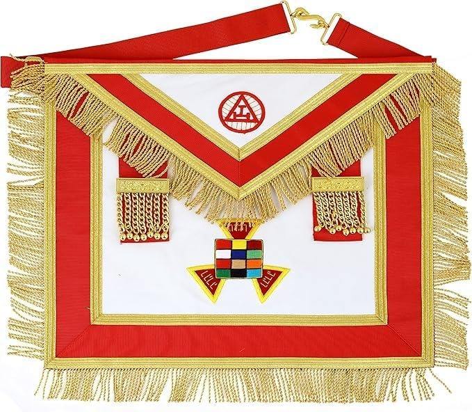 ผ้ากันเปื้อนพระสงฆ์ยศสูง Royal Arch – ปักดิ้นทองด้วยมือ, หนังแกะแท้ 100%, ผ้ากำมะหยี่สีแดงชนิดหนังแกะ