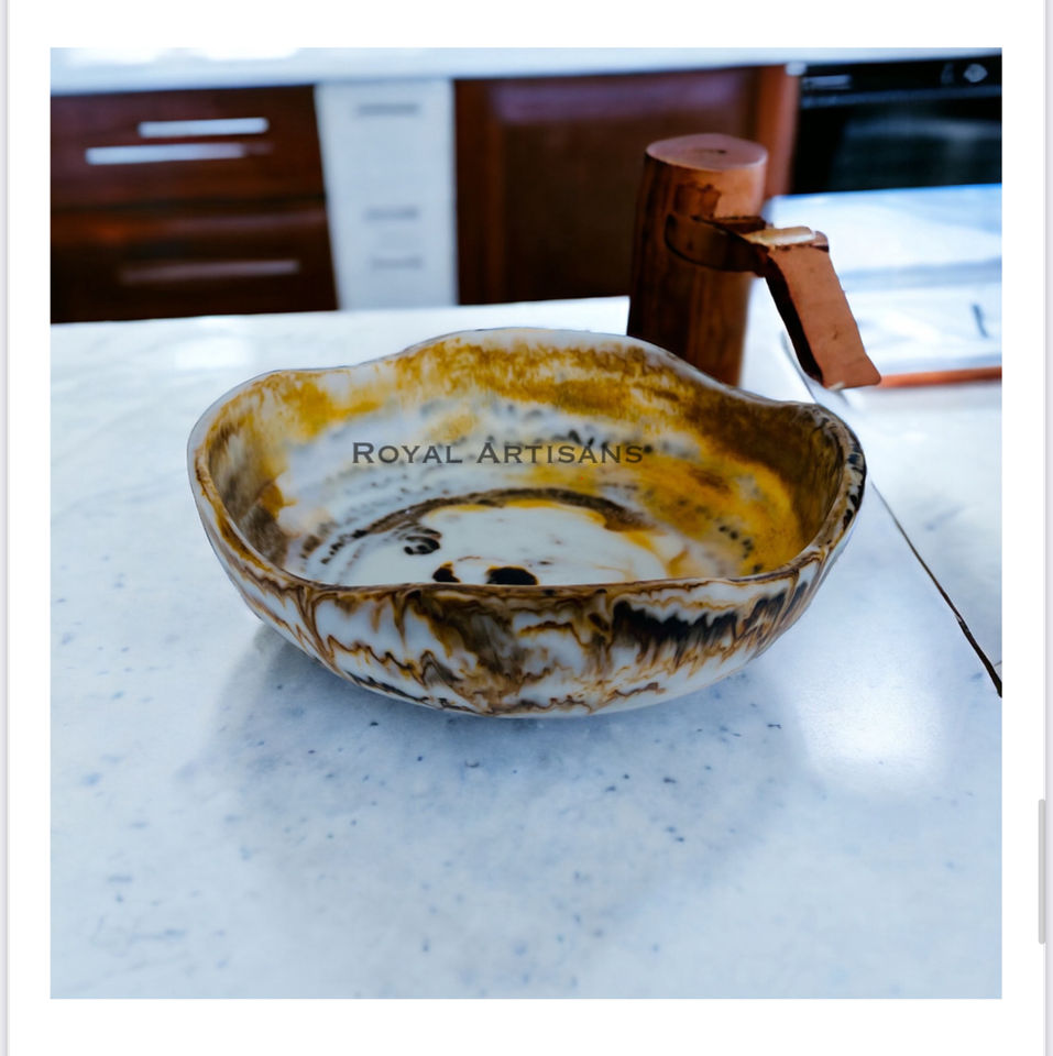 ชามเสิร์ฟสลัดผลไม้ทรงยุโรปแบบเรซิ่นขัดเงาไม่เคลือบผิว ผลิตโดยช่างฝีมือชั้นสูง ปลอดภัยสำหรับอาหาร เป็นมิตรต่อสิ่งแวดล้อม