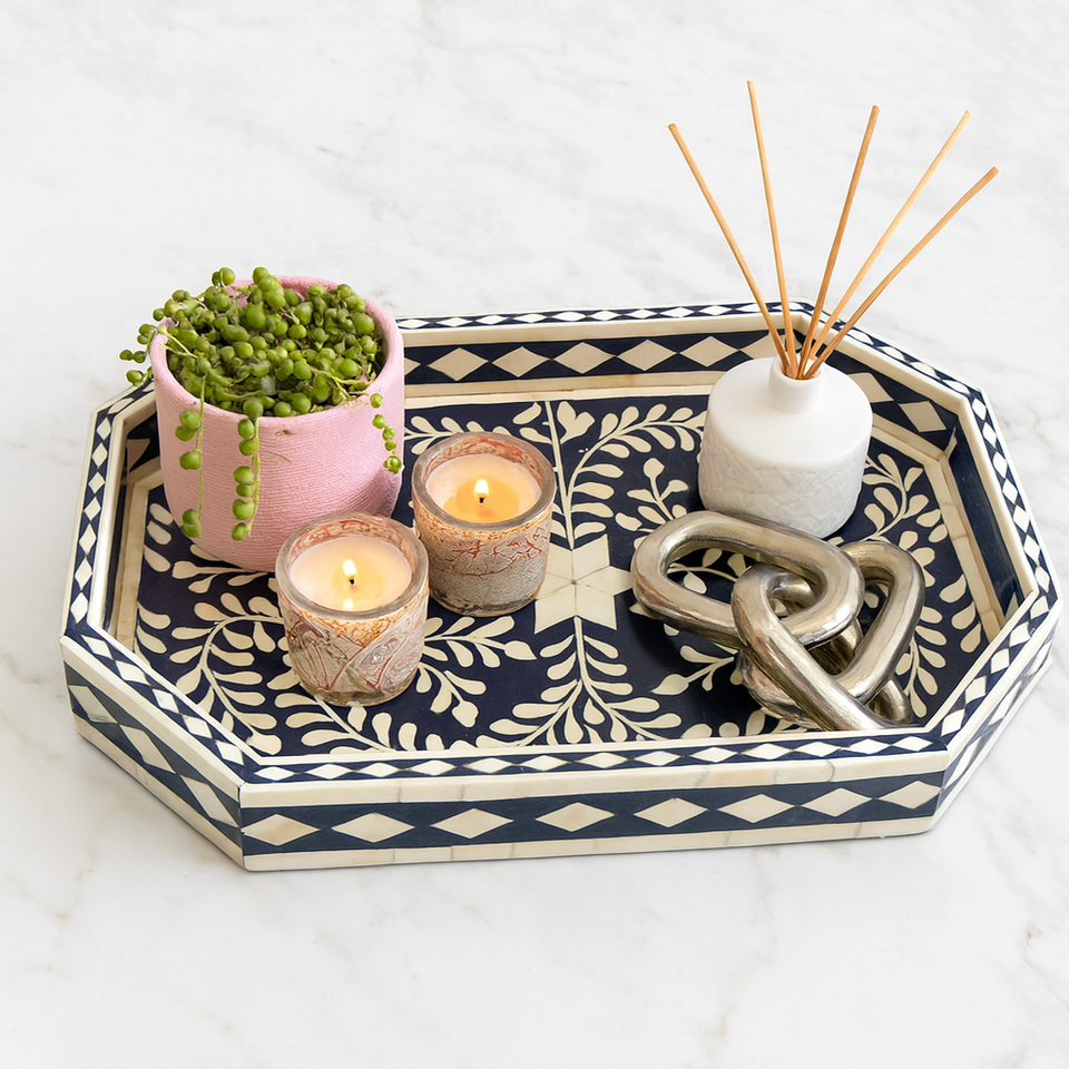 Royal artisans ถาดรองกระดูกสีดำงานแฮนด์เมดถาดเสิร์ฟตกแต่งดีไซน์สี่เหลี่ยมผืนผ้าของตกแต่งบ้านสุดหรูของขวัญคริสต์มาสเดือนรอมฎอน