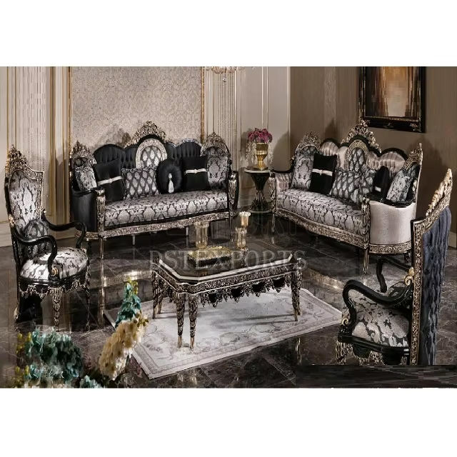 ชุดโซฟาเพชรสีดำรอยัลสำหรับห้องนั่งเล่นชุดเฟอร์นิเจอร์สุดหรูจากไม้สัก8ที่นั่ง
