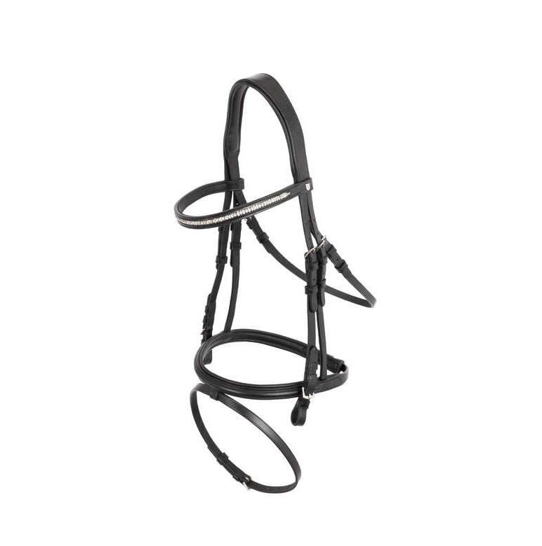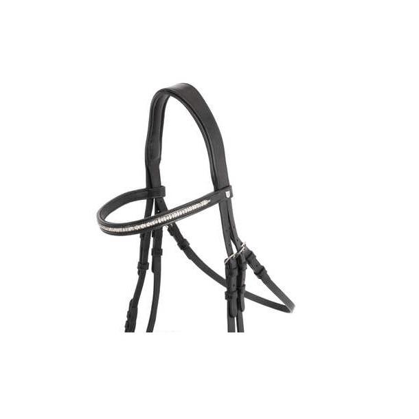 บังเหียนอังกฤษหนังแท้สีดำรอยัลพร้อมสายคาดสีน้ำตาลคริสตัลที่มียางกันกระแทกแบบอินเดียผลิตภัณฑ์จากผู้ผลิตม้า