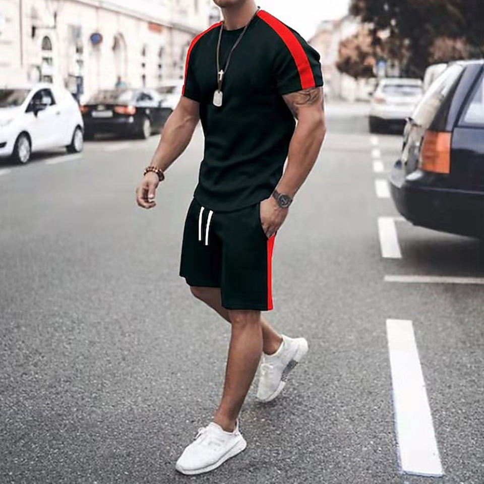 ชุด2ชิ้นสำหรับผู้ชายกางเกงขาสั้นชุดออกกำลังกายลำลองชุดวอร์มชุดกีฬาแบบลำลองระบายอากาศ