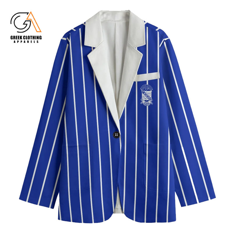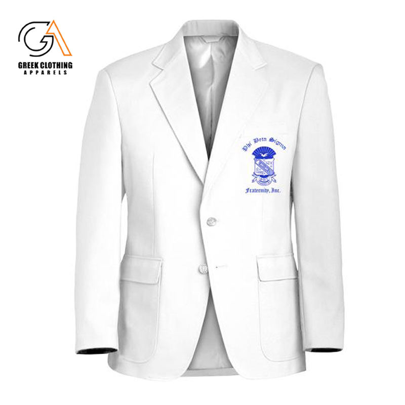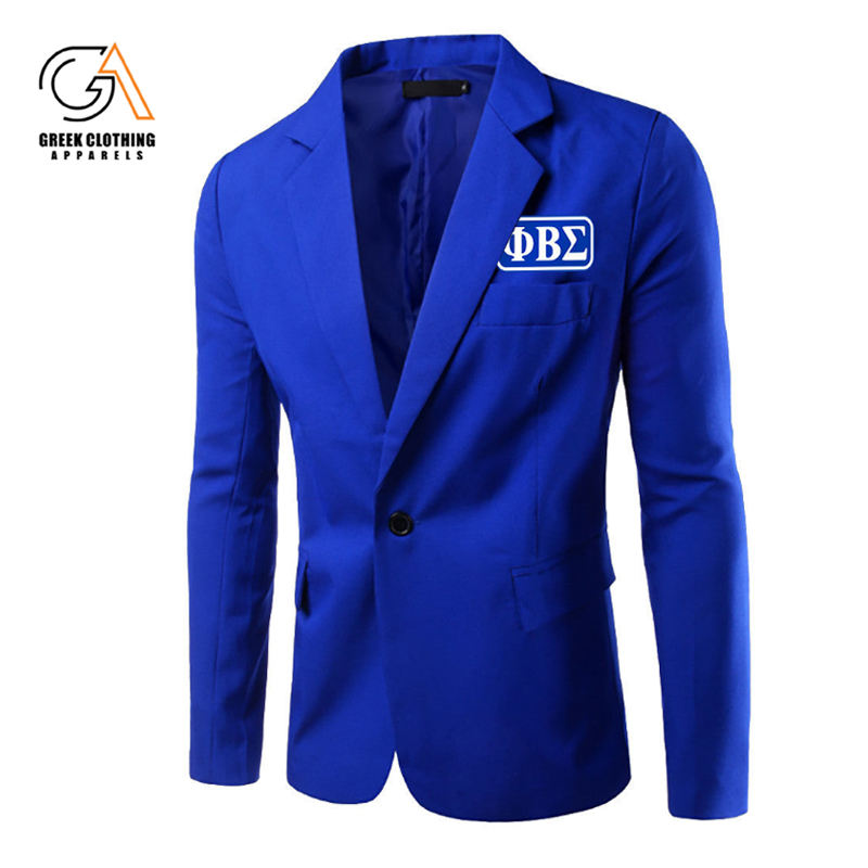 เสื้อเบลเซอร์เพื่อนชายสีฟ้าพร้อมตราประจำตระกูลปักสำหรับพี่น้อง phi Beta Sigma สำหรับประชุมและชุดมืออาชีพที่ทันสมัย