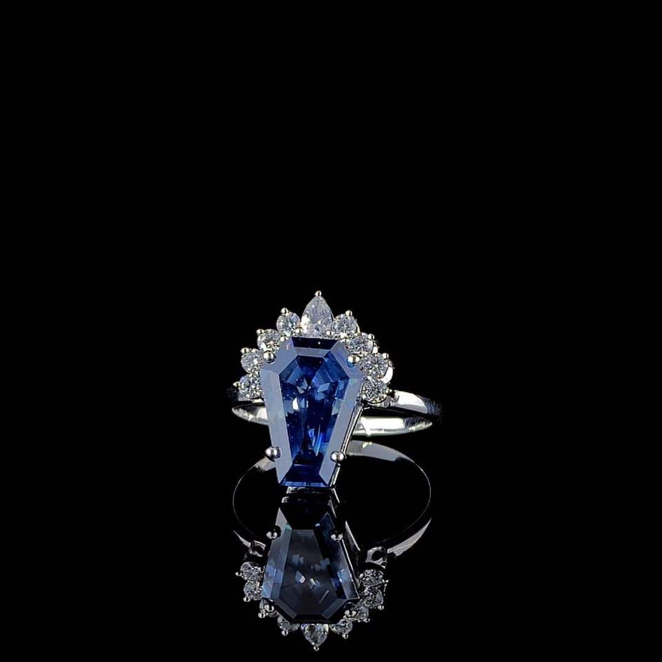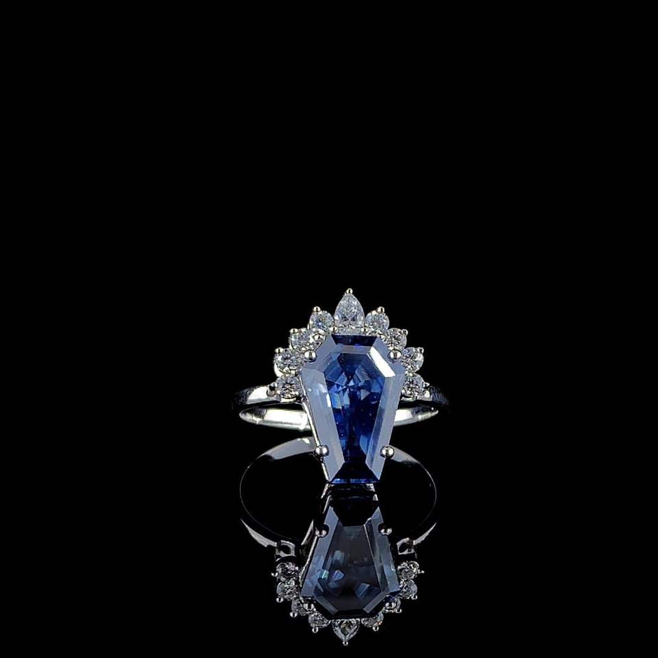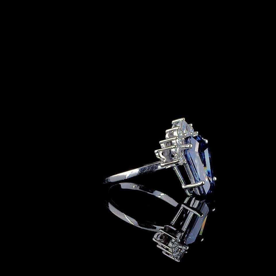 แหวนพลอยสีน้ำเงินรอยัลบลูทรงโลงศพ, แหวนเงินประดับพลอยสีน้ำเงิน, แหวนหมั้นดีไซน์พิเศษ, เครื่องประดับแฟชั่นหรูหราพลอยสีน้ำเงิน