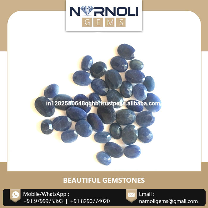 พลอยแซฟไฟร์พลอยสีฟ้าทรงไข่เจียระไนแบบไม่ผ่านการอบด้วยความร้อน