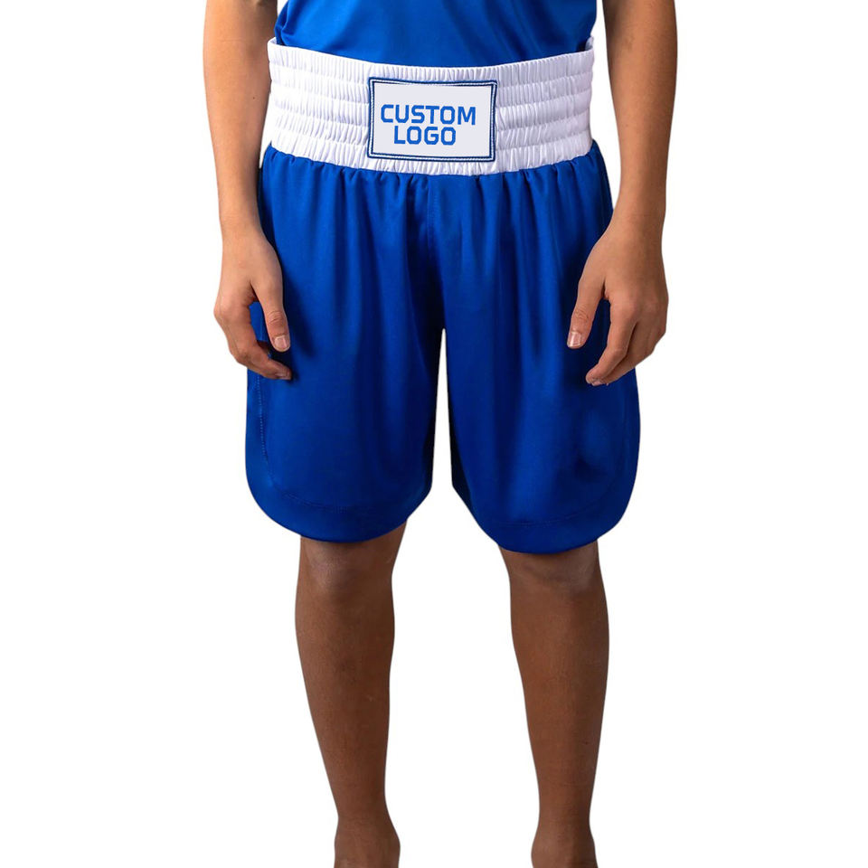 กางเกงชกมวยสีน้ำเงินรอยัลคุณภาพสูง ผลิตด้วยมือ ระบายอากาศได้ดี ทำจากโพลีเอสเตอร์ พร้อมโลโก้และสีที่กำหนดเอง สำหรับการฝึกซ้อมมืออาชีพฤดูใบไม้ร่วง