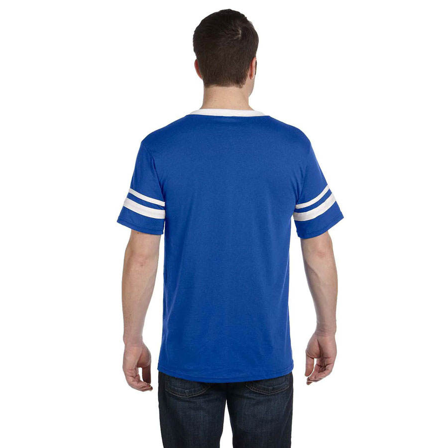 เสื้อยืดคอวีผู้ชายสีน้ําเงินรอยัลแขนสั้นผ้าฝ้ายพื้นฐานพรีเมี่ยมเสื้อยืดลําลองแบบยั่งยืนป้องกันการหดตัว