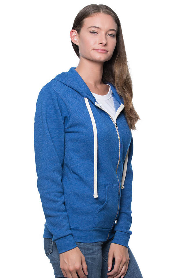 เสื้อฮู้ดมีซิปสีรอยัลบลูแบบ Tri-Blend