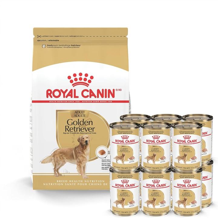 Royal Canin breed Health สุนัขพันธ์โกลเด้นรีทรีฟเวอร์อาหารแห้งสำหรับผู้ใหญ่ถุง30ปอนด์อาหารสุนัขกระป๋องสุขภาพ13.5ออนซ์สามารถนับได้12ครั้ง)