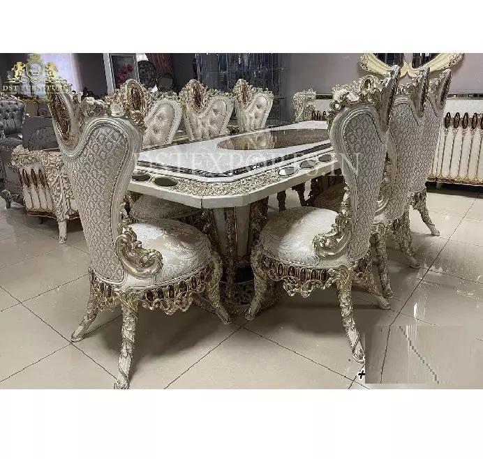 ชุดโต๊ะอาหารสีเงินแชมเปญแกะสลักหลวง