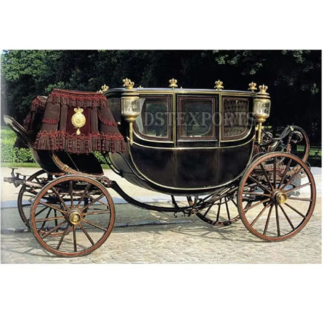 รถม้าระดับราชวงศ์รถลากรถลากม้าสีดำรถม้าสำหรับงานแต่งงานเจ้าหญิงรถม้าสีดำ