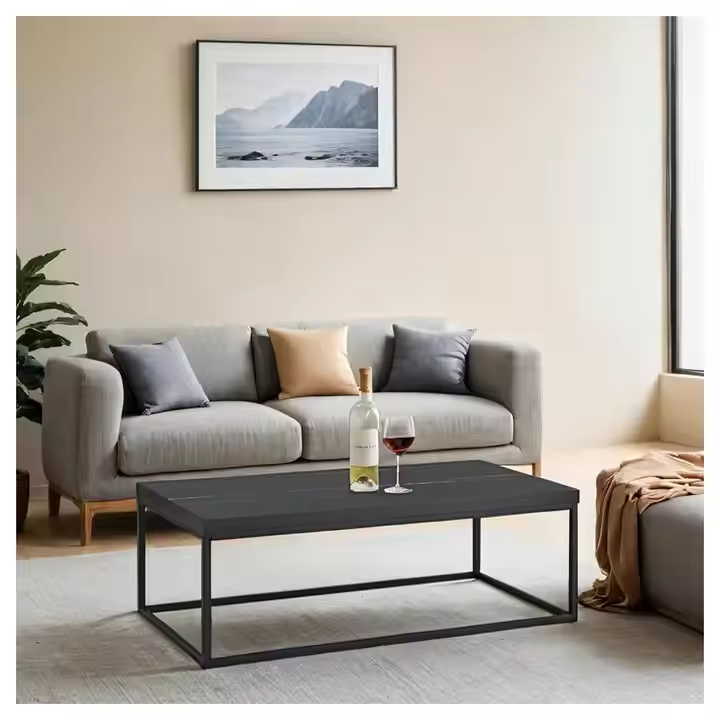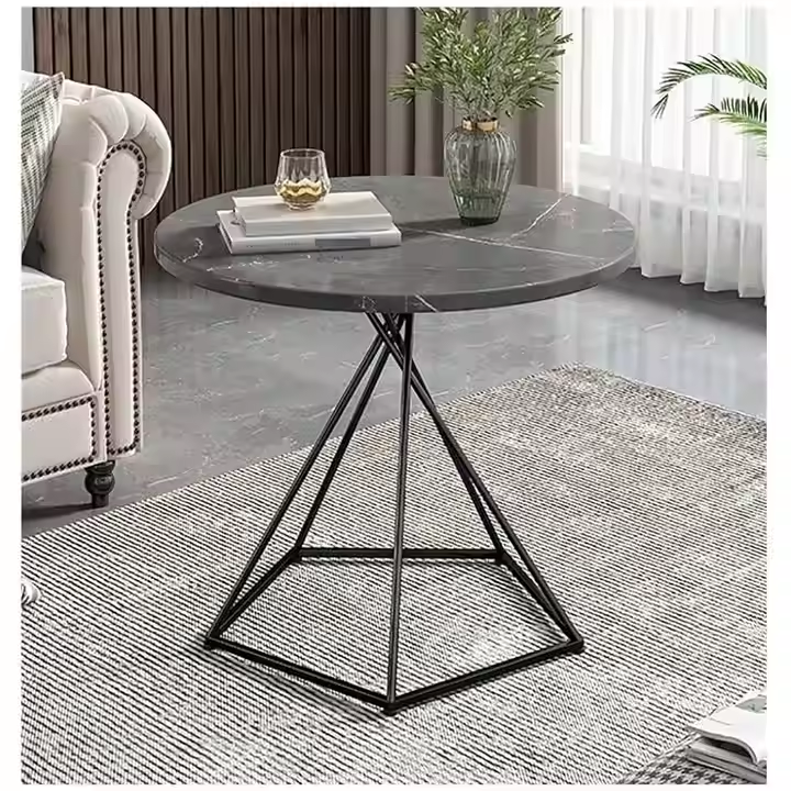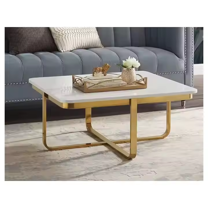 โลหะพร้อมโต๊ะกาแฟหินอ่อนและโต๊ะข้าง