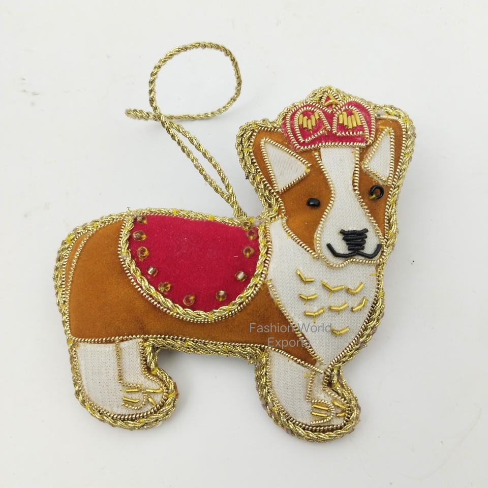 เครื่องประดับแขวนรูปสุนัขรอยัลคอร์กี้ตกแต่งต้นคริสต์มาสพร้อมมงกุฎกำมะหยี่ปักรายละเอียดเทศกาลแฮนด์เมดสำหรับคนรักสุนัข